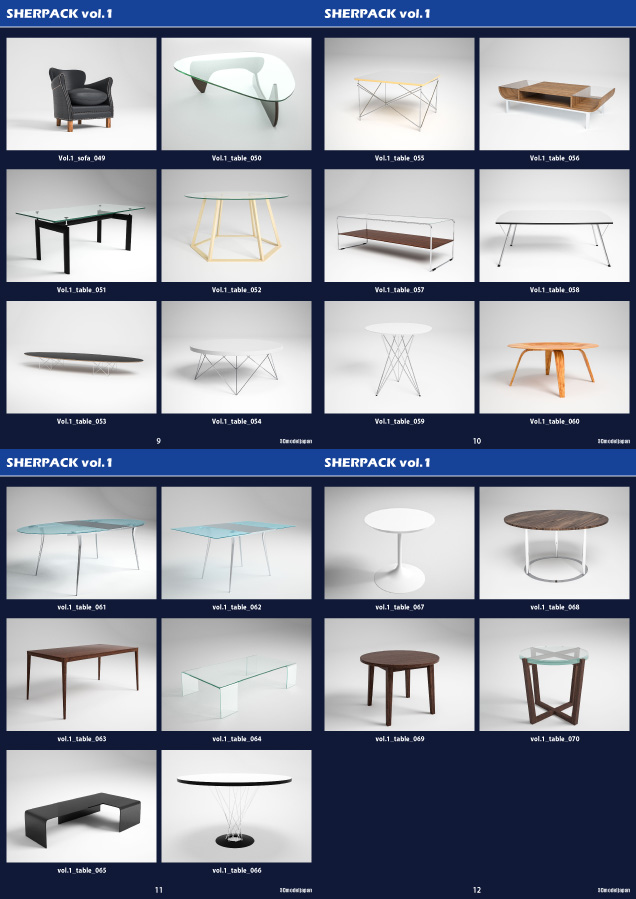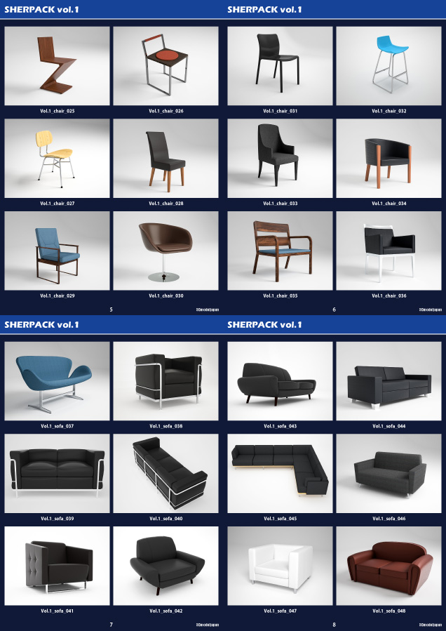 SHERPACK vol.1はデザイナーズ家具を中心に高品質な3Dモデルデータを70個収録しています。