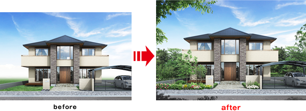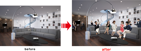 製品・什器・植栽などを合成